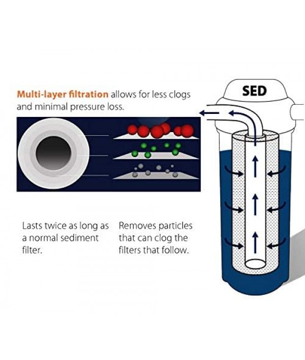 Wellon 10" Blue Double O-Ring Housing Kit with Spun Filter and Elbow Connectors, Compatible with All RO/UV/UF Water Purifiers.