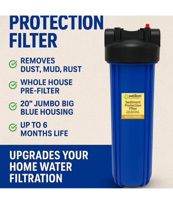 Wellon Sediment Protection Filter – Jumbo 20" Housing | High-Flow Whole House Pre Filter | Removes Dust, Mud, Rust, Sand | 6 Months Life | Compatible with All 20” Big Blue Housings
