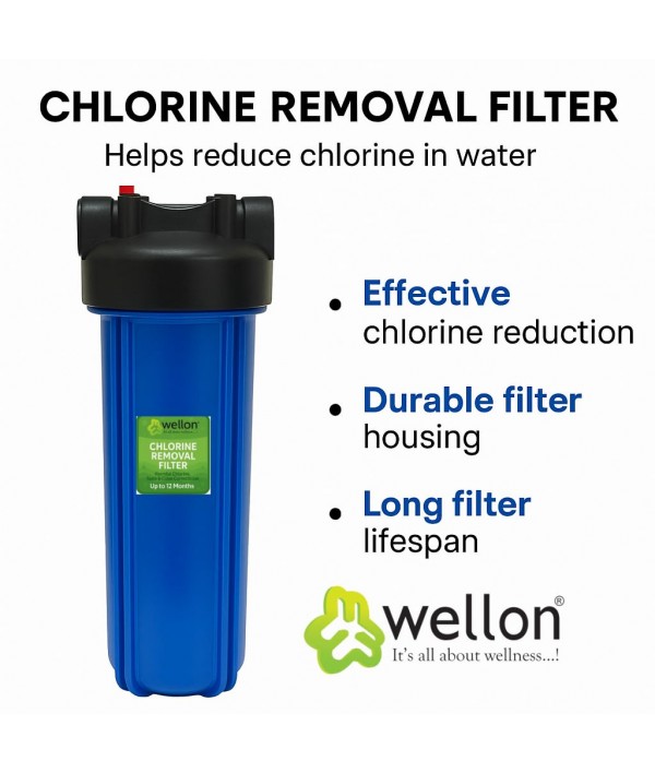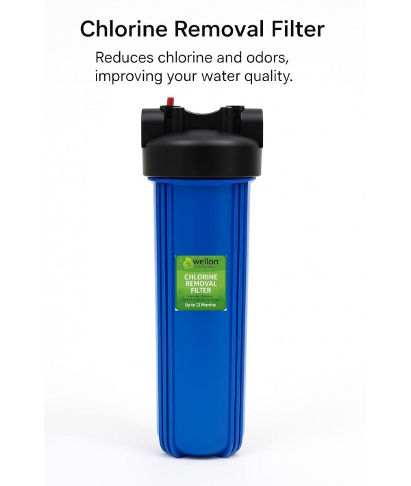 Wellon Chlorine Removal Filter – 20 Inch Big Blue Whole House Water Filter Cartridge for Chlorine, Taste & Color Correction – Up to 12 Months Life