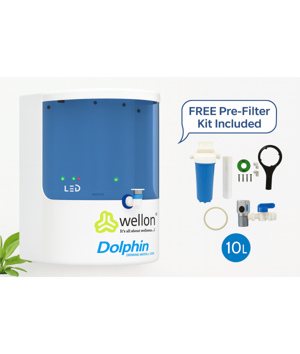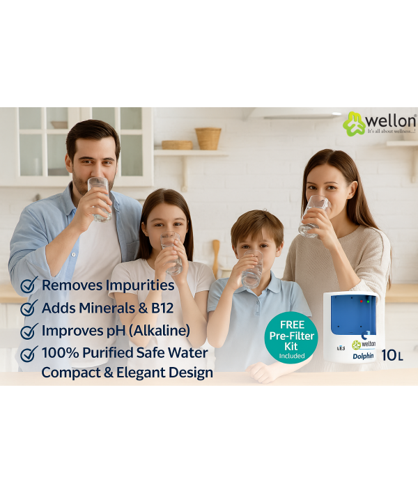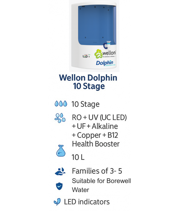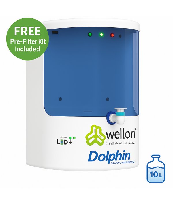 Wellon Dolphin 10-Stage RO + UV + UF + Alkaline + Copper + B12 Health Booster Water Purifier | 10L Storage | Free Pre-Filter Kit