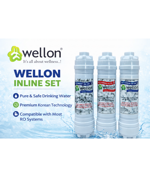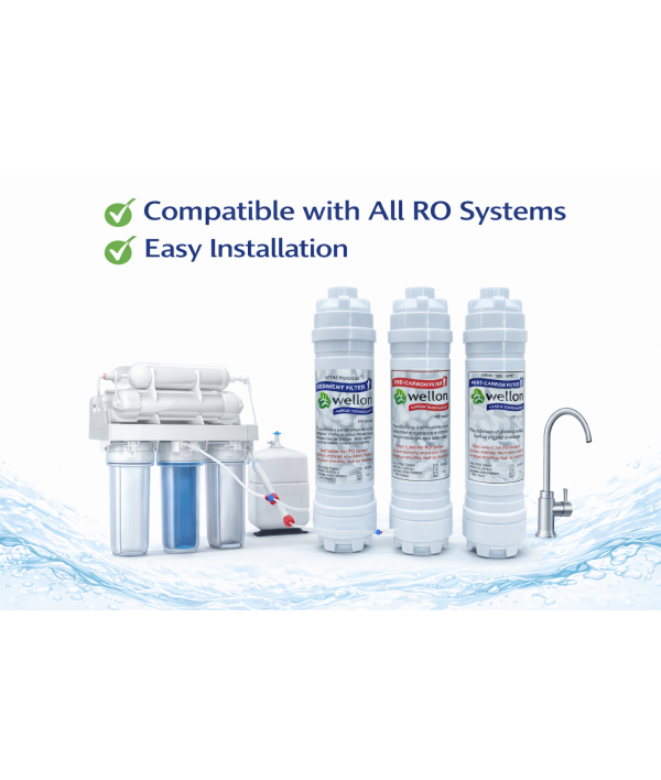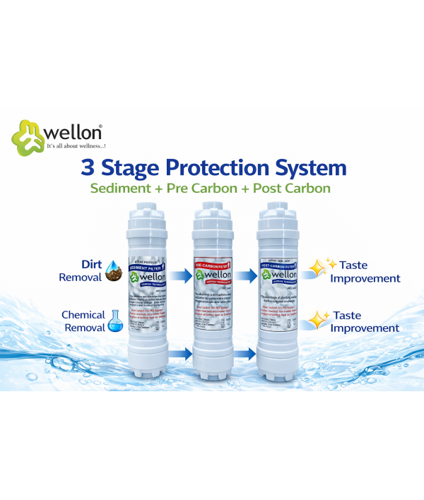 Wellon Inline Filter Set | Sediment + Pre Carbon + Post Carbon | 3 Stage RO Protection System