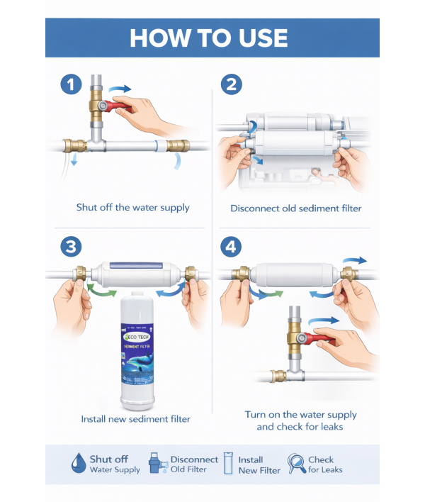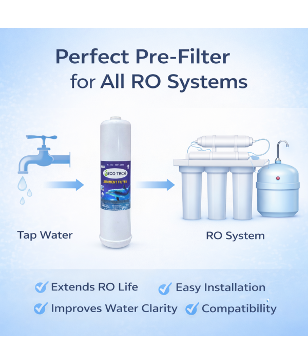 Necotech Inline Sediment Filter Cartridge | High Efficiency Dirt & Rust Removal | Universal RO Water Purifier Compatible | Long Life Pre-Filter