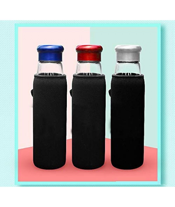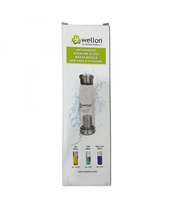 WELLON ANTIOXIDANT ALKALINE GLASS WATER BOTTLE BPA FREE & HYGIENIC and Portable Carry Case – 650ml (Blue)
