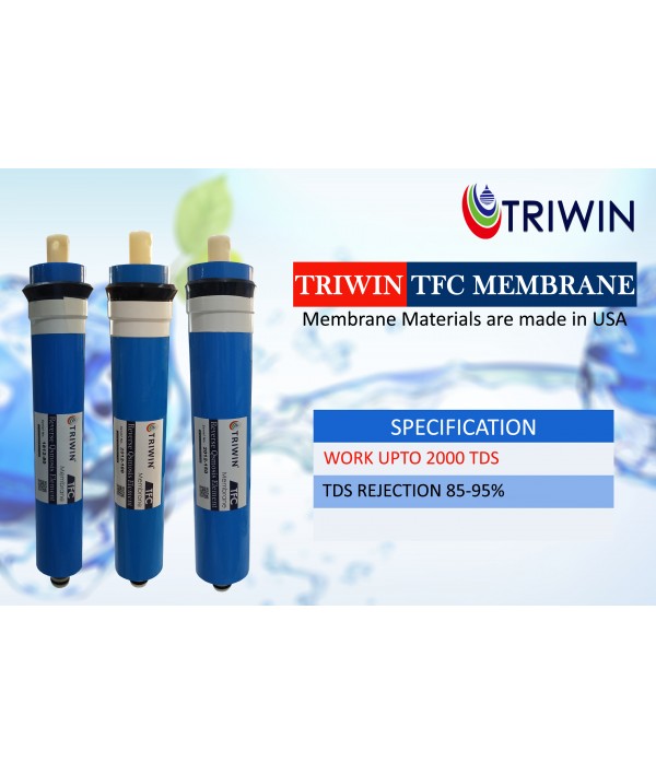 Optimize your water purification system with the TRIWIN TFC 80 GPD Membrane, designed to deliver effective filtration for all types of RO water purifiers. This membrane is engineered to handle Total Dissolved Solids (TDS) levels up to 2000, ensuring clean and safe drinking water.