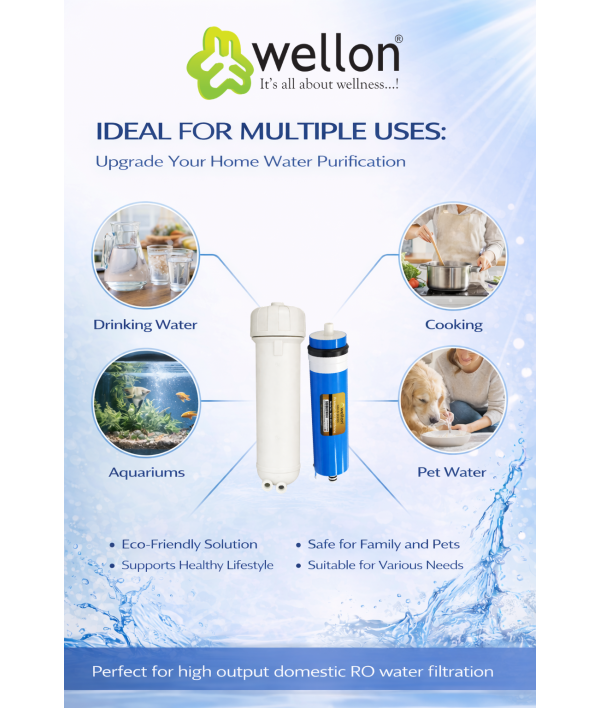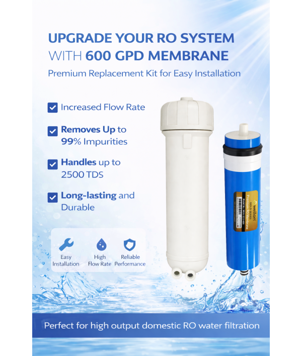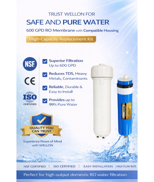 Enhance your water purification performance with the Wellon 600 GPD RO Membrane with 600 GPD Membrane Housing Combo Kit. Designed for high-capacity domestic and commercial RO systems, this combo ensures faster filtration, stable output, and efficient TDS reduction.