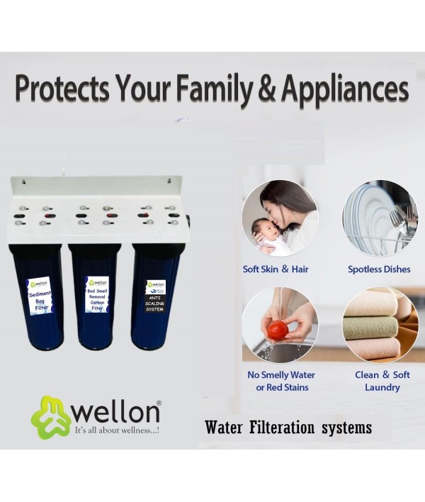 Wellon Tank Filtration System | Water Softener for Bathroom, Whole House Filter for Saltless Water Softener Effective Scaling & Hard Water Treatment with Triple Filter Setup, Water Filter for Home (Water Softener)
