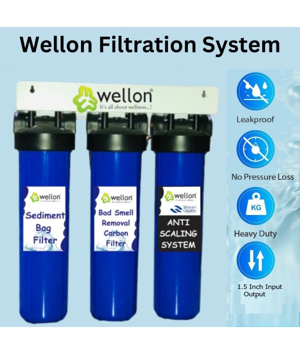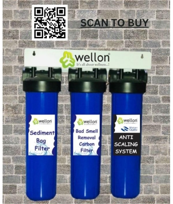 Transform your home's water quality with the Wellon Tank Filtration System. Designed to provide effective scaling and hard water treatment, this advanced system ensures that your entire household enjoys the benefits of soft, clean, and safe water. Ideal for bathrooms and whole house applications, the Wellon system uses a saltless water softener with a triple filter setup to deliver superior performance.